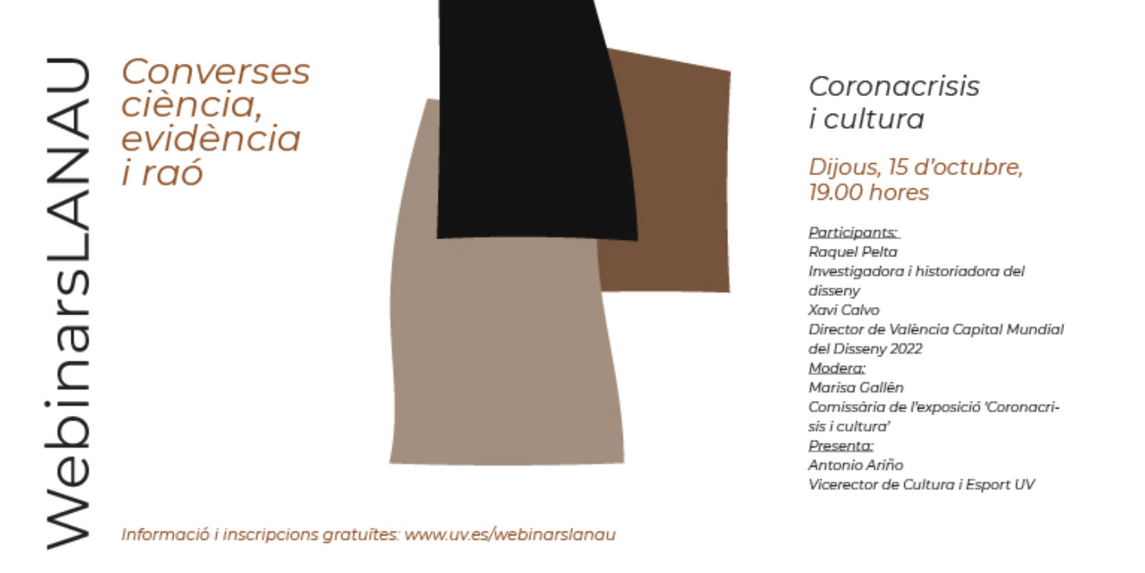 En este webinar, la investigadora e historiadora del diseño, Raquel Pelta, y el director de ‘Valencia Capital Mundial del Diseño 2022’, Xavi Calvo, dialogarán con el vicerrector de Cultura y Deporte de la Universitat de València, Antonio Ariño, y con Marisa Gallén, comisaria de la exposición ‘Coronacrisis i cultura’ sobre cómo el talento del diseño y la ilustración se pone al servicio de comunicar y concienciar acerca de los desafíos que tenemos que abordar a raíz de la pandemia del Covid-19.
