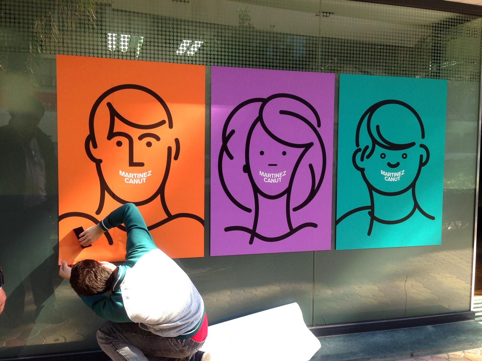 La Clínica Martinez Canut lleva funcionando un cuarto de siglo y fue la primera clínica especializada en Periodoncia en Valencia. Fue también pionera en la implementación de control de calidad. Desde su apertura, esta clínica ha tenido un especial cuidado en el diseño de interior y gráfico. Está situada en el centro de Valencia, en una calle con mucha luz pero la a pesar de ello, la fachada en la que se ubica la clínica es un tanto oscura. La finalidad de los pósters diseñados por el estudio Pérez-Colomer no era anunciar ningún tipo de promoción ni servicio en concreto, sino destacar la clínica y apoyar la imagen de calidad del centro. Para ello se crearon tres carteles diferentes que representan a su vez otros tantos personajes. El uso de la tipografía es sutil, reduciendo al mínimo el uso de textos. La ilustración es clara y sintética, con un uso del color muy llamativo que marca la atención sobre su situación. De lejos el personaje se nos aparece con una amplia sonrisa que a medida que se reduce la distancia pasa a ser el nombre de la clínica.