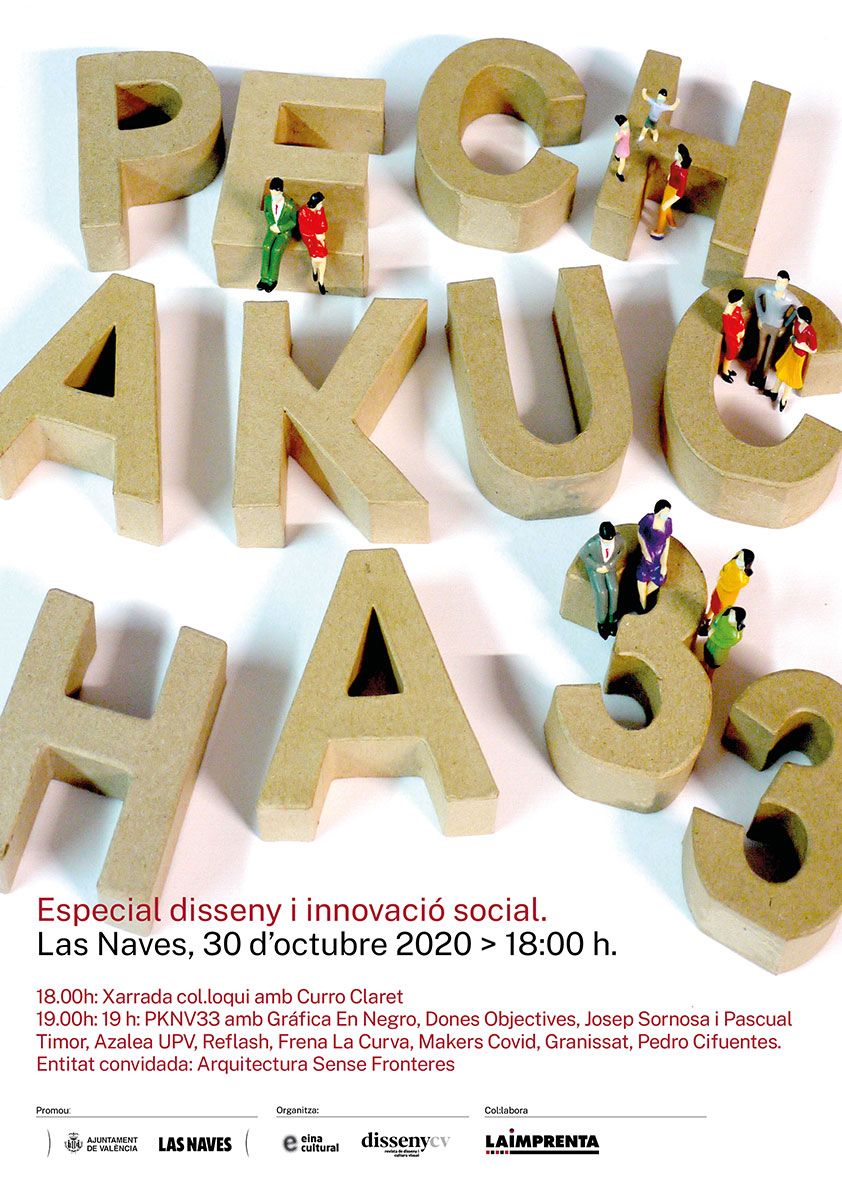 Previamente a PechaKucha Night tendrá lugar una charla-coloquio (18:00 horas) a cargo de Curro Claret, diseñador industrial, docente y miembro de la Junta Directiva del FAD (Foment de les Arts i el Disseny). Su trabajo se distingue por ser fruto de una reflexión constante sobre el papel del diseñador en la sociedad y la inclusión del usuario en los procesos de creación. Al mismo tiempo su diseño se puede considerar social en tanto que a menudo es una herramienta para generar procesos de inclusión, colaboración y co-diseño con colectivos de personas en situación de fragilidad.