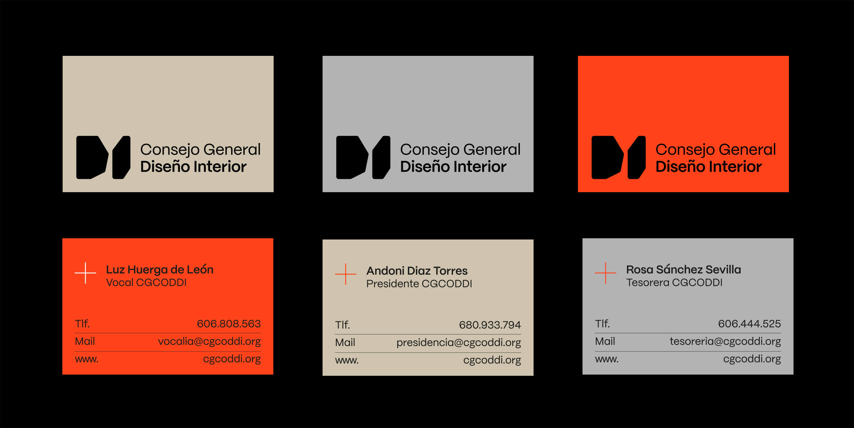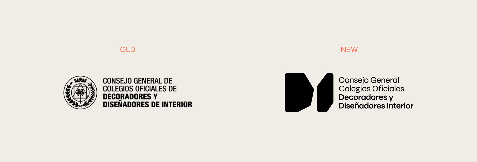 La marca original se construye con la siguiente denominación completa: —Consejo General de Colegios Oficiales de Decoradores y Diseñadores de Interior. Nuestra propuesta pasa por un ejercicio de reducción y simplificación hacia las palabras clave, para conseguir la mayor cantidad de información en el menor número de términos posible.