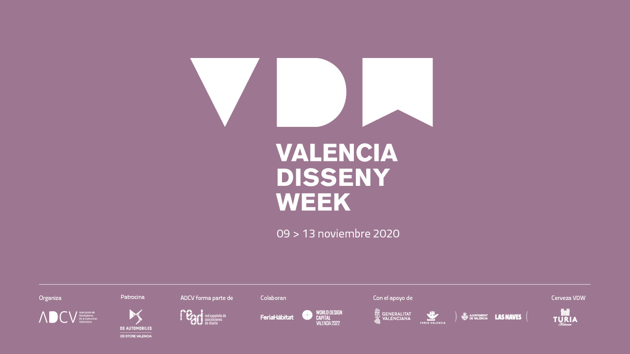 La Valencia Disseny Week 2020, #VDW20, se celebra este año del 9 al 13 de noviembre con un formato predominantemente digital.