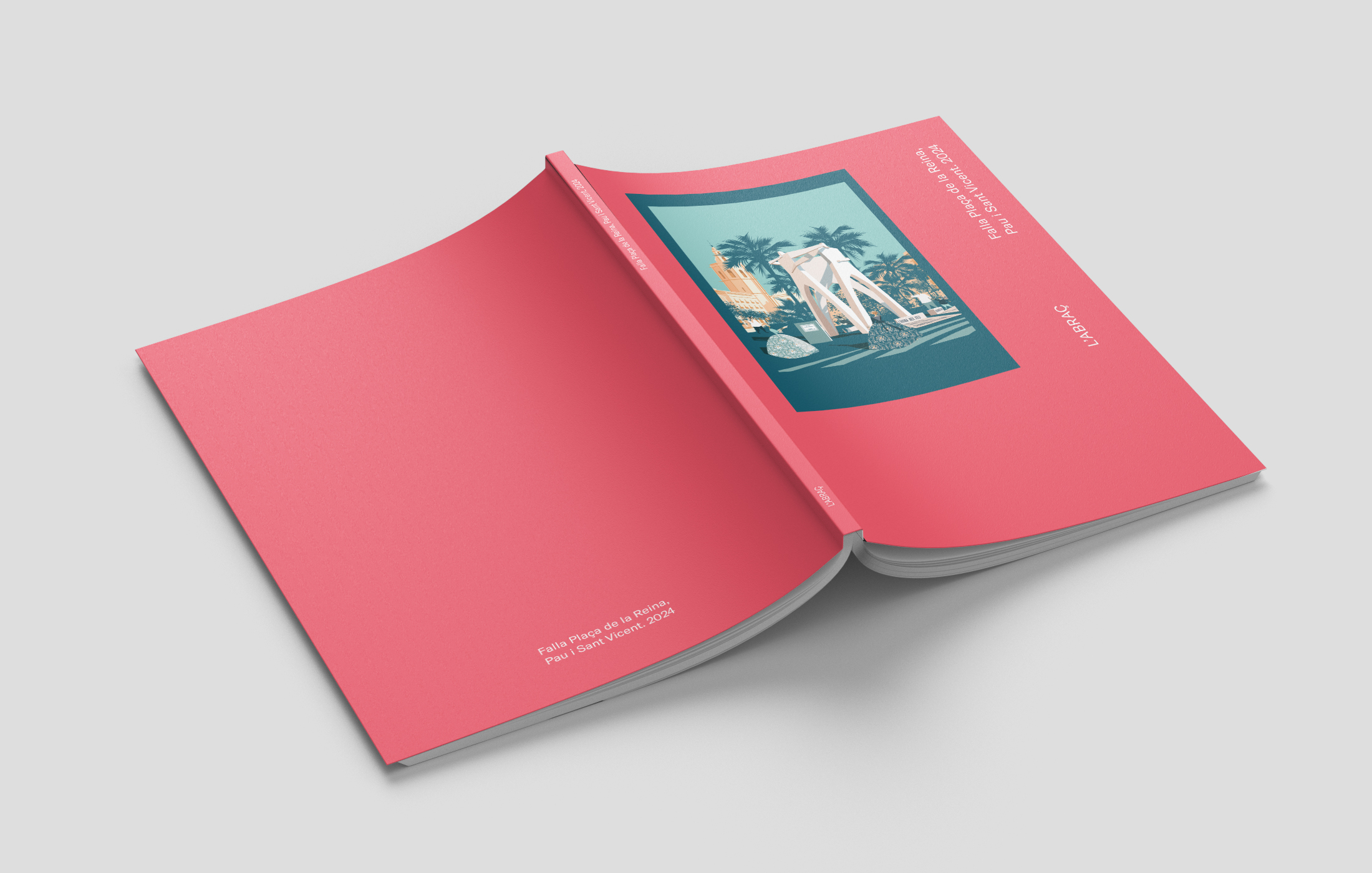 En la parte cultural del llibret, la clave era dejar protagonismo al texto. Por este motivo, lo traté como un catálogo de arte, donde las obras de arte son los textos. Para darle un formato algo más informal, opté por justificar los párrafos a bandera e intercalar las imágenes necesarias en una página sola, rompiendo el ritmo de lectura y dando un respiro a la persona lectora. En el capítulo dedicado expresamente a nuestra falla en sí, me interesaba mucho mostrar el proceso de creación. Como todas las ideas que surgen se transforman en lo que vemos al final. Por suerte, trabajar con Virginia Lorente es un lujo, ya que ella documenta y esboza cada paso del camino.