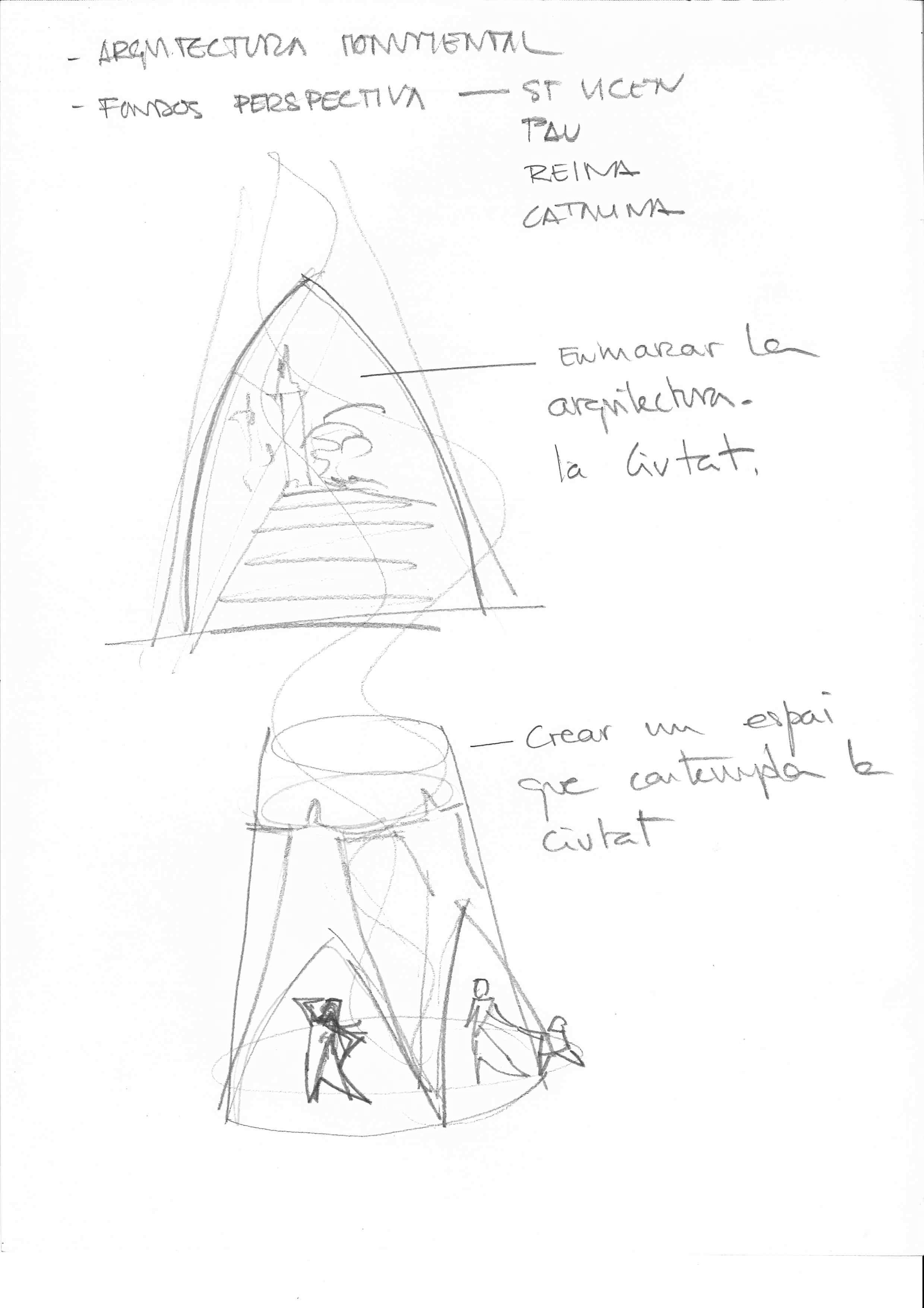 Tenía que representar su obra en una imagen, un gesto, un momento,…y lo tuve claro, sería un abrazo, un enorme abrazo a nuestra cultura, nuestra lengua, nuestra tierra y sobre todo a la vida que tanto amó. Es lo que siento al leer su obra, un abrazo sincero. El abrazo se transforma en una torre, un miramar, a través del cual contemplar la ciudad. La naturalidad y honestidad de su lenguaje se representa a través de los materiales, sencillos, naturales,…madera y tela. La madera, reutilizada de restos de otros proyectos del taller donde se ha realizado.