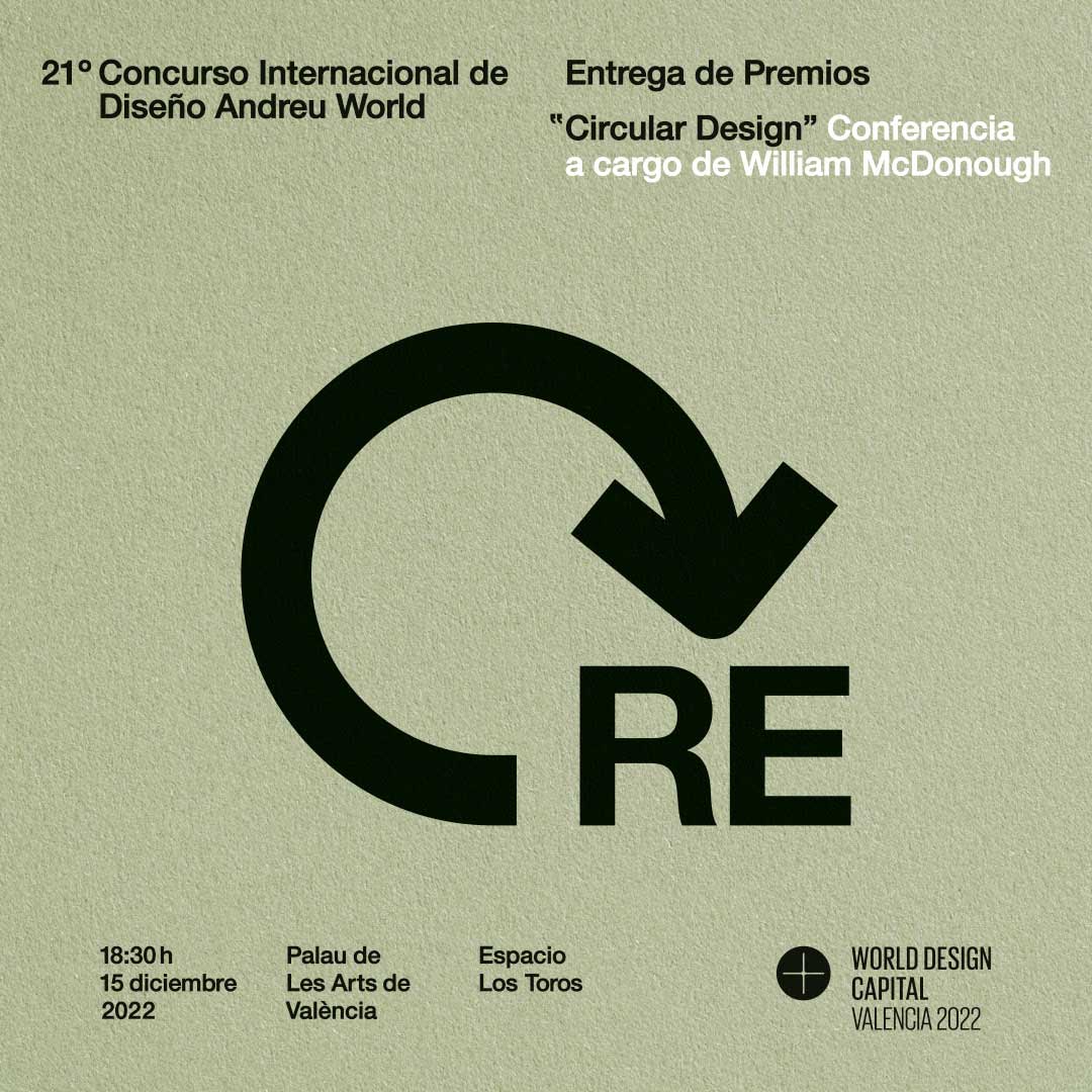 El próximo 15 de diciembre Andreu World desvelará los ganadores de su 21º Concurso Internacional de Diseño, con un acto conducido por Xavi Calvo (director de València Capital Mundial del Diseño 2022) que tendrá lugar en el Palau de les Arts Reina Sofía. El encuentro contará con la presencia de los miembros del jurado de esta edición: William McDonough, arquitecto y creador de ‘cradle to cradle’; Petra Stephan, directora de la revista AIT, el diseñador industrial Rodolfo Dordoni, la arquitecta Beth Galí y David Basulto, editor jefe de ArchDaily.